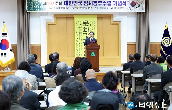 [대전타임뉴스=홍대인 기자] 제107주년 대한민국임시정부 수립 기념식이 10일 옛 충남도청사에서 광복회 대전시지부 주관으로 열렸다.