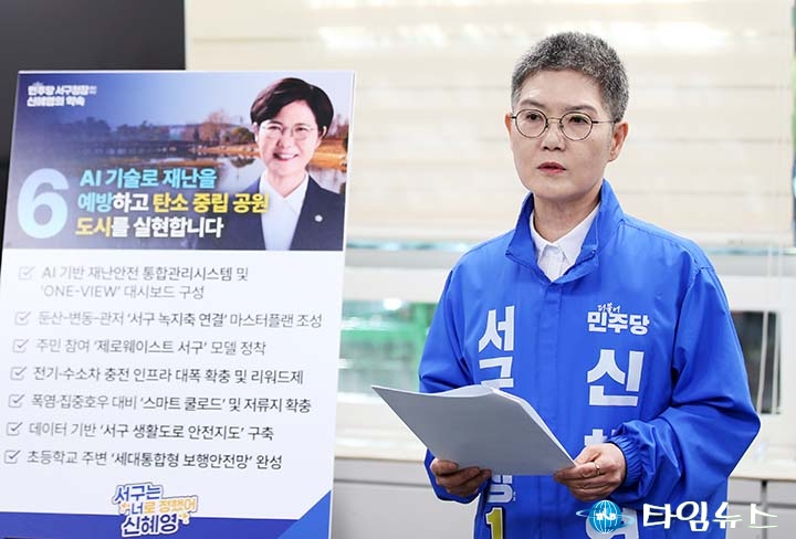 [대전타임뉴스=홍대인 기자] 신혜영 대전 서구청장 예비후보는 13일 “불투명하고 폐쇄적인 깜깜이 행정을 끝내겠다"며 현 구정을 비판하고 방산·의료·교통·경제·돌봄·재난·자치 등 7대 공약을 제시했다. 투명행정을 앞세운 구조 개편 구상이다. 신 예비후보는 이날 대전시의회 기자회견에서 “서구청장 선거는 누가 더 유명한지가 아니라 누가 주민 삶에 밀착해 준비된 사람인가의 선택"이라며 “비리와 부패에 맞서 싸울 수 있는 후보가 필요하다"고 밝혔다. 그는 “현 구청장 체제에서 불투명하고 폐쇄적인 행정이 이어졌다"며 “모든 행정 과정을 시민에게 공개하는 투명행정으로 전환하겠다"고 강조했다. 공약은 7개 분야로 구성됐다. 방산 분야에서는 관저동 유휴부지에 국방 AI 복합캠퍼스와 방산 교육·연수 클러스터를 조성해 청년 일자리를 확대하겠다고 밝혔다. 의료 분야에서는 국립기초의학연구원을 유치해 둔산권을 의료관광 중심지로 육성하겠다는 계획이다. 교통 분야에서는 정부대전청사역 지하복합환승센터 구축과 스마트 셔틀 도입으로 CTX와 트램을 연계하고 교통 사각지대를 해소하겠다고 했다. 경제 분야에서는 ‘서구경제플러스’ 플랫폼을 통해 지역 상권 디지털 전환과 자립형 경제 구조를 구축하겠다고 밝혔다. 돌봄 분야에서는 고령친화 행복마을 조성과 조부모 돌봄수당 확대, 돌봄 노동자 처우 개선을 제시했다. 재난·환경 분야에서는 AI 기반 재난관리 시스템 도입과 탄소중립 공원도시 조성을 추진하겠다고 했다. 자치 분야에서는 동장 주민추천제와 주민참여예산 확대, 모바일 플랫폼을 통한 행정 공개로 주민 참여를 강화하겠다고 밝혔다. 신 예비후보는 “감시와 견제에서 설계와 실행으로 나아가겠다"며 “깨끗하고 투명한 행정으로 서구민 신뢰를 회복하겠다"고 말했다.