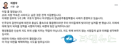 [대전타임뉴스=홍대인 기자] 이장우 대전시장은 15일 “행정통합 20조 원 재정 지원 약속이 사라졌다"며 광주·전남 사례를 들어 정부 정책을 비판했다. 이장우 시장은 이날 페이스북에서 “전남·광주 통합을 보면 ‘선 통합 후 보완’ 주장과 달리 재정 지원은 삭감되고 있다"며 “남은 것은 지방채 부담뿐"이라고 밝혔다. 광주·전남은 통합 준비 예산 576억 원을 정부에 요청했으나 177억 원만 국회 상임위원회를 통과했고, 추가경정예산에는 반영되지 않았다. 정부는 대신 지방채 발행과 공공자금 차입 방안을 제시한 것으로 전해졌다. 이 시장은 “연간 5조 원, 4년간 20조 원 지원 약속이 지켜지지 않고 있다"며 “통합이 미래세대에 빚 부담을 남길 수 있다"고 주장했다. 이어 “행정통합은 단순한 행정구역 조정이 아니라 시민의 삶과 미래가 걸린 문제"라며 “대전의 미래는 대전시민이 결정해야 한다"고 강조했다. 앞서 이 시장은 대전·충남 통합 추진 과정에서 재정 지원을 특별법에 명문화해야 한다고 요구해 왔다. 그는 “정부 방안은 포괄적 수준에 그치고 4년 이후 재정 지원 계획도 불명확하다"고 지적했다.