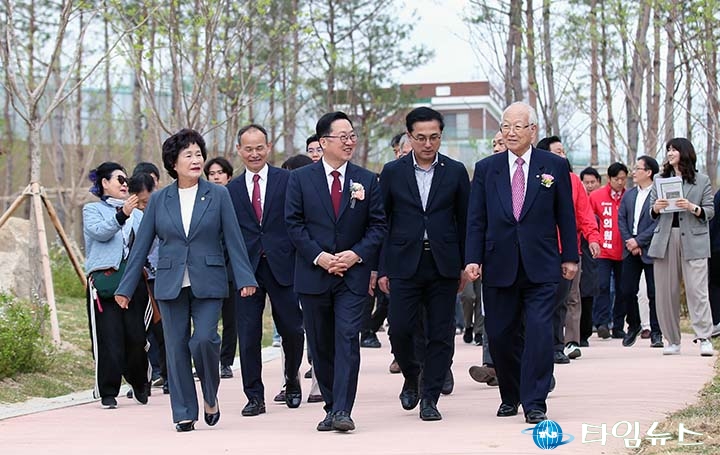 홈 / 정치 정치 이장우 대전시장, 연못·녹지 사이 걸으며 시민과 대화 홍대인 기자 기사입력 2026-04-17 17:02:16 대전 [대전타임뉴스=홍대인 기자] 이장우 대전시장이 17일 소제중앙문화공원 준공식 직후 연못과 녹지 사이 산책로를 따라 걸으며 현장을 점검했다. 이장우 시장은 사색마당과 쉼터를 오가며 동행한 관계자들과 대화를 나눴다. 산책로에서는 시민들과 마주치자 걸음을 늦추고 짧게 인사를 건네는 모습도 보였다. 공원 곳곳을 둘러보며 시설 상태를 확인한 이 시장은 준공 직후 운영 준비 상황을 점검했다. 홍대인 기자 <저작권자 © 타임뉴스 무단전재 및 재배포 금지> 관련 기사 이철우, "동해안을 해양 경제 주역으로"… 북극항로·신공항 연계 10대 공약 발표 2026.04.29 진호건 전남도의원, “농자재 가격 폭등…전남도 차원 추가 대책 마련해야” 2026.04.28 전남도의회 행정통합 TF, 통합특별시의회 출범 주요 현안 점검 2026.04.28 김진오 대전시의원, 개소식서 재선 도전 선언…‘통합 반대’ 퍼포먼스 2026.04.28 권선택 전 대전시장, 이장우 “권위·불통”…허태정 재도전 필요 2026.04.28 댓글 댓글 기능은 준비 중입니다.