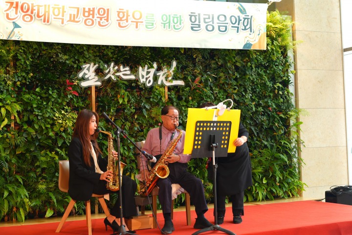 [대전타임뉴스=홍대인 기자] 건양대병원은 23일 병원 로비에서 ‘환우를 위한 힐링 음악회’를 열고 99세 김희수 명예총장이 색소폰 연주로 환우들에게 위로를 전했다고 밝혔다. 이날 음악회는 환우와 보호자, 교직원이 함께한 가운데 진행됐으며, 김 명예총장은 무대에 올라 직접 준비한 곡을 연주했다. 로비에 울려 퍼진 선율은 병원을 찾은 이들에게 잠시나마 마음의 안정을 전하는 시간을 만들었다. 1928년생인 김 명예총장은 오랜 시간 음악 활동을 이어오며 은퇴 이후에도 환우를 위한 봉사 연주를 지속하고 있다. 김 명예총장은 “제 연주가 작은 위로가 되길 바란다"고 말했다.