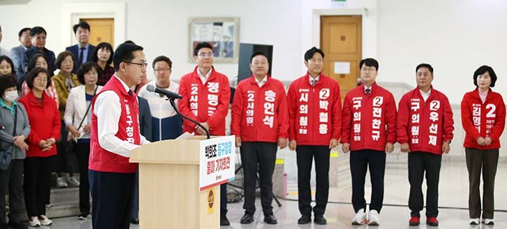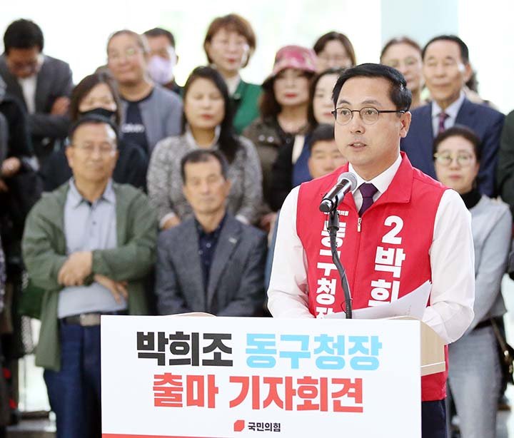 박희조 동구청장은 민선 8기 성과도 제시했다. 그는 “정체된 원도심이던 동구에 활력을 불어넣었다”며 통합가족센터, 스마트경로당, 안심귀가보안관 구축과 동구동락 축제 111억 원 경제 효과 등을 언급했다.