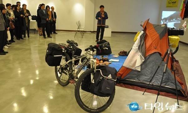 이번 전시는 최 전 부시장 부부가 3개월간 자전거로 여행하며 찍은 사진 300여 장과 여행 구간 지도, 여행시 사용한 텐트 등 야영 장비, 자전거 등 소품 모두를 공개했다.