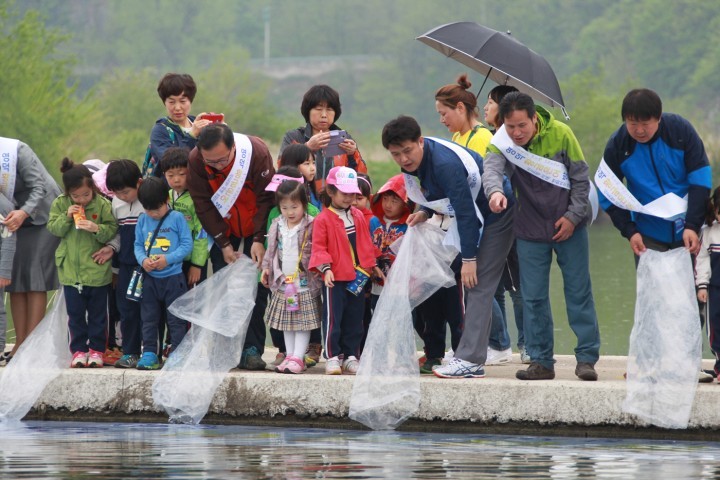 [영덕타임뉴스=백두산기자]영덕군(군수 이희진)은 4월 29일 영덕읍 오십천 일원에서 영덕읍 이장, 사회단체 및 어린이집 어린이 등 약 200여명이 참여한 가운데 ‘영덕황금은어’ 140만미를 방류했다.