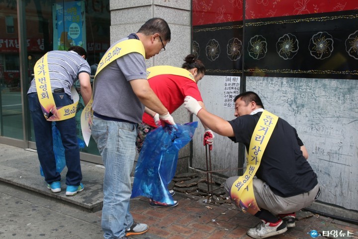 [부천=김응택기자]부천시 소사구 송내1동 솔안상가번영회(회장 최근욱) 회원 40여명은 지난 20일 오전 08:30분 송내역 남부광장에 모여 깨끗하고 아름다운 솔안마을을 조성하고자 송내역 남부광장과 버스정류장, 상가골목길 등에 버려진 담배꽁초, 생활쓰레기 200리터를 수거하여 훈훈한 미담이 되고 있다.