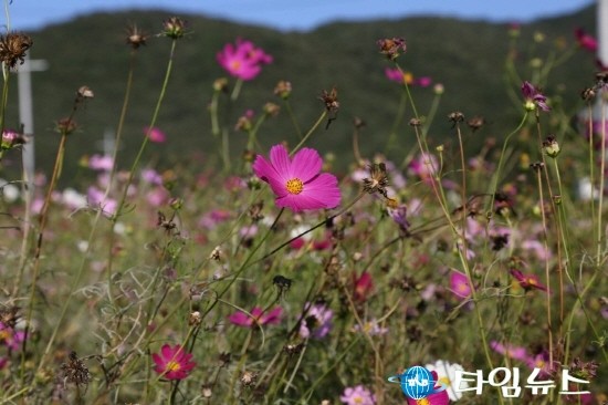 [천안=최영진기자] 아직 한낮의 햇볕은 따갑지만 어느덧 주위는 가을빛으로 완연하게 물들어 가고 있는 시기에, 가을의 전령사 코스모스 활짝 피어 바람에 몸을 맡긴 채 행락객과 시민들의 발길을 사로잡고 있다.