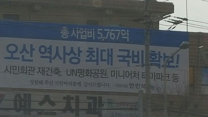 총선을 불과 4개월여 앞두고 좁디 좁은 오산시 관내 곳곳에 새누리당과 새정치민주연합 등 각 정당들이 무분별하게 경쟁적으로 내건 정책 및 치적 홍보 현수막 게첩으로 몸살을 앓고 있다. 이를 지켜보는 시민들의 입에서 급기야 육두문자까지 새 나오는 형국이다.