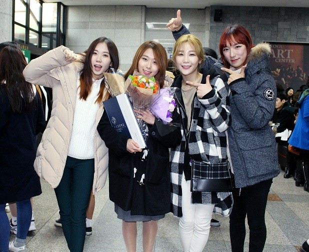 [서울=송용만기자]멤버 '현화'의 졸업을 함께 축하하러 '더스타즈' 동료 멤버(진주. 미린, 현진)들이 함께 참석하여 자리를 빛냈다.