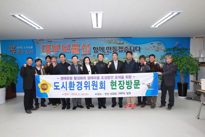 이번 도시환경위원회의 방문은 지난해 말 남경필 경기도지사와 합의한‘경기도 생태 테마파크’ 조성을 위해서 처음으로 이루어지는 현장조사활동으로 후보지 가운데 하나로 꼽히는 대부도를 방문해 도유지 현황과 입지여건 등을 둘러보고 주변의 생태마을 및 생태관광 자원과의 연계성 등을 논의하는 자리를 가졌다.
