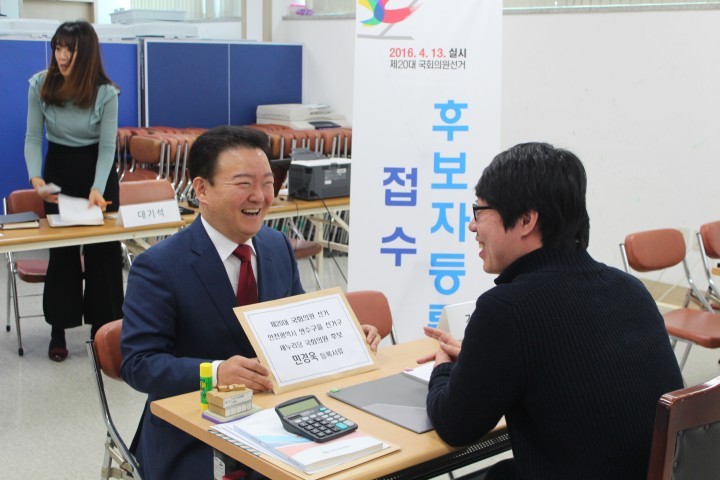 [타임뉴스=김민규] 24일 오전 인천 연수구(을) 민경욱 후보와 연수구(갑) 정승연 후보가 함께 새누리당 국회의원 후보 등록을 마쳤다.