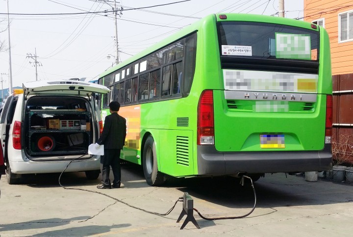 점검결과 시외버스 1대, 시내버스 1대, 마을버스 6대 등 모두 8대의 차량이 운행차 배출허용 기준 초과로 적발됐다, 주로 저속으로 운행하는 마을버스에서 기준 초과 차량이 많았다.