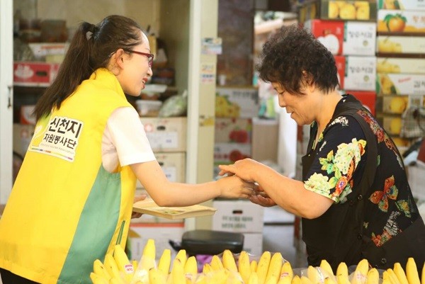 익산 신천지 자원봉사단은 지난 23일 오후 2시부터 중앙시장 상인들과 장을 보러 나온 시민에게 여름철 식중동 예방과 소화증진에 도움이 되는 시원한 매실효소차를 주며 밝고 생기 있는 미소로 재래시장 살리기 캠페인을 벌였다.