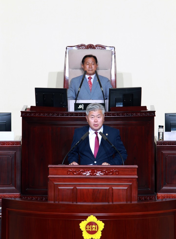 이 의원은 이번 도정질문을 통해 학교무상급식관련 예산과 관리운영문제를 지적하고,평택항의 발전방안을 위해 현안문제를 지적했다. 이 의원은 “학교 무상급식은 교육감 공약사항으로 교육청 자체예산으로 해결해야 하는 문제임에도 불구하고 경기도와 시·군에 각각 30%씩 분담을 요구하고 있다"면서 “타 지자체와 달리 급식에 관한 경비의 지원 및 요청 시 공개협의과정도 거치고 있지 않으면서 분담확대만을 주장하는 것은 문제가 있다"고 비판했다.