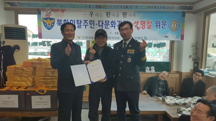 [단양=이부윤 기자]충북 단양경찰서(서장 정영오)는 오전 11시 관내 식당에서 설날 명절을 맞아 북한이탈주민 및 불우 다문화가정 등 13가구를 초청하여 위문품 전달, 오찬을 겸한 애로사항 청취 등 조기정착에 기여할 수 있는 위로의 시간을 가졌다..