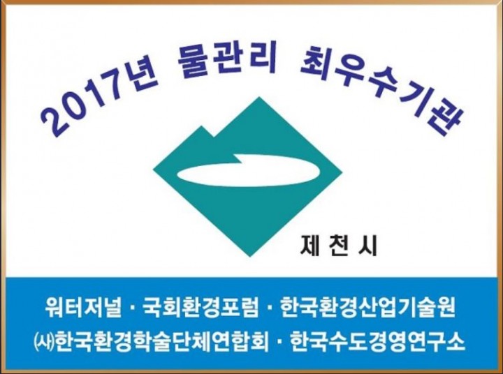 [제천=이부윤 기자]충북 제천시는 환경부가 후원하고 국회환경포럼 및 (사)한국환경학술단체연합회가 주최하는 ‘2017년 물관리 최우수기관’에 선정되었다.