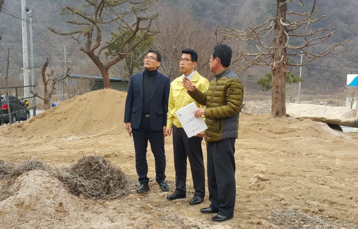 이태훈 부군수는 해빙기 급경사지인 영춘면 하리 붕괴위험지구 정비 사업 현장을 방문해 안전 점검을 실시하고 관계자들을 격려했다. 이 부군수는 “급경사지에 옹벽이 설치됐으나 배면과의 거리가 협소해 토사유실과 낙석방지가 어려운 실정이다"며, “안전사고 예방을 위해 상시 예찰 활동을 강화하고 위험 요인 발견 시 즉시 시정 조치해 달라"고 말했다.