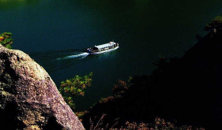 기암괴석 병풍을 헤집고 유유히 떠가는 유람선 풍경은 산행의 피로를 잊게 하기에 충분하다.