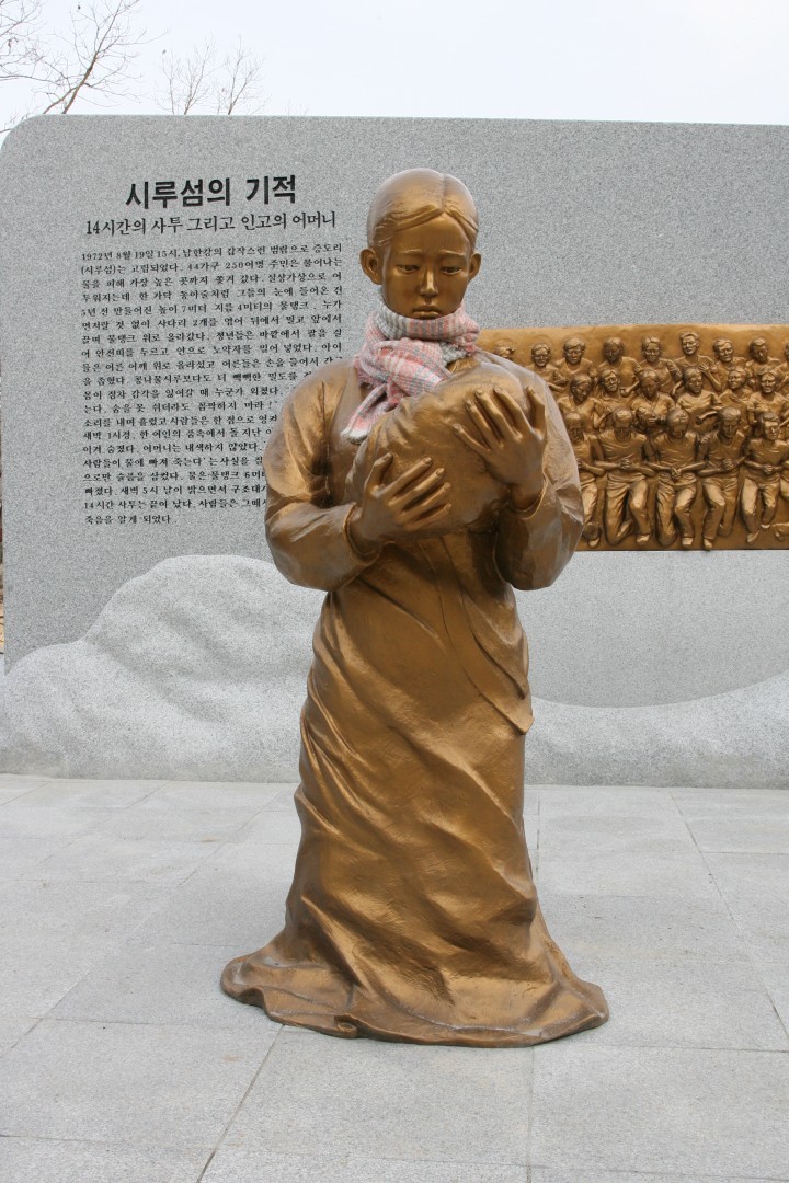 아기의 죽음을 알고도 주민들의 위험에서 구한 아기 어머니의 동상