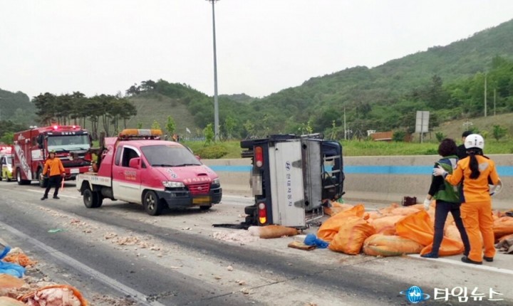 운전자 및 동승자는 경상으로 다행히 큰 부상은 없었고, 트럭 전도로 인해 실려있던 육가공식품들이 모두 도로 위로 떨어져 잠시 교통이 통제 되었다.