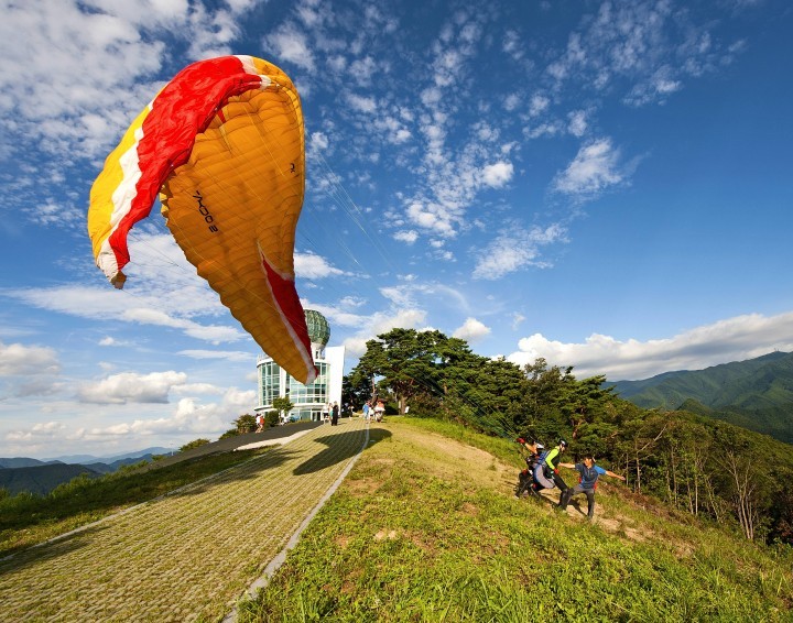 충북 단양군에 따르면 이달에는 3,000여명이 참가한 가운데 전국‧도 단위의 궁도와 사이클, 힐클라이밍, 패러글라이딩 등 4개의 이색 스포츠가 치러진다. 먼저 오는 2일 국내 처음으로 패러글라이딩 정밀착륙대회가 열린다. '2017 코리아 오픈 패러글라이딩 정밀착륙컵 대회(2017 Korea Open accuracy cup)'가 2일부터 4일까지 사흘간 단양읍 양방산 활공장 등지에서 펼쳐진다. 단양 드림레저와 조나단 레포츠 주최·주관으로 열리는 이 대회는 2일 연습비행을 하고 본 경기는 3일부터 이틀간 열리지만, 기상 상황에 따라서는 일정이 조정될 수 있다. 대회에는 인도네시아, 말레이시아, 싱가포르, 체코 등 7개국에서 세계 랭킹 상위권에 있는 외국 선수 30명과 국내 선수 90명 등 120명이 출전한다.경기는 한 선수가 6회 이상 활공해 정밀착륙(Accuracy) 하는 방식으로 양방산 활공장에서 이륙해 수변무대 쪽 하상주차장에 설치된 지름 50㎝ 크기의 원판 전자 타깃에 정밀 착륙하는 것으로 점수를 매긴다.