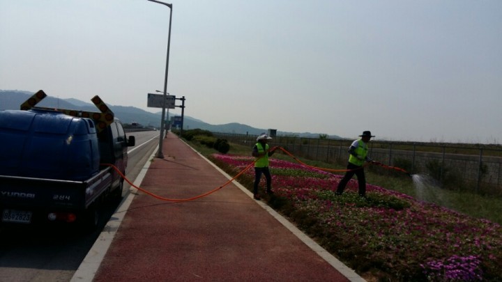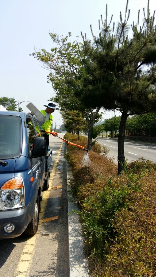 또한 지난 6월 7부터일 살수차(2000L) 3대를 동원해 주요 도로변 대형화분 800여개, 교통섬, 가로등화분 등에 대한 관수작업을 진행하고 있으며, 관수가 어려운 조촌로, 강변로 등 주요도로변 중앙분리대수목 5개 노선을 대상으로 물주머니 600개를 설치하여 가뭄피해 예방에 최선을 다하고 있습니다.