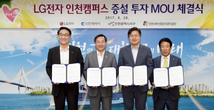 [인천타임뉴스=김민규] 인천광역시(시장 유정복)는 28일 시청 접견실에서 LG전자(대표 조성진), 인천시 서구(청장 강범석), 인천서부산업단지관리공단(이사장 박윤섭)과 함께 LG전자 인천캠퍼스 증설 투자협약(MOU)을 체결했다.