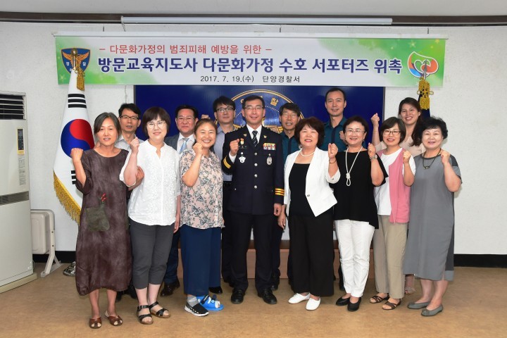 [단양타임뉴스=이부윤 기자]충북 단양경찰서는 다문화가정의 아동학대, 가정폭력 등 범죄예방을 위해 단양군다문화가족지원센터 방문교육지도사를 대상으로 다문화가정 수호 서포터즈 위촉식과 간담회를 마련했다.