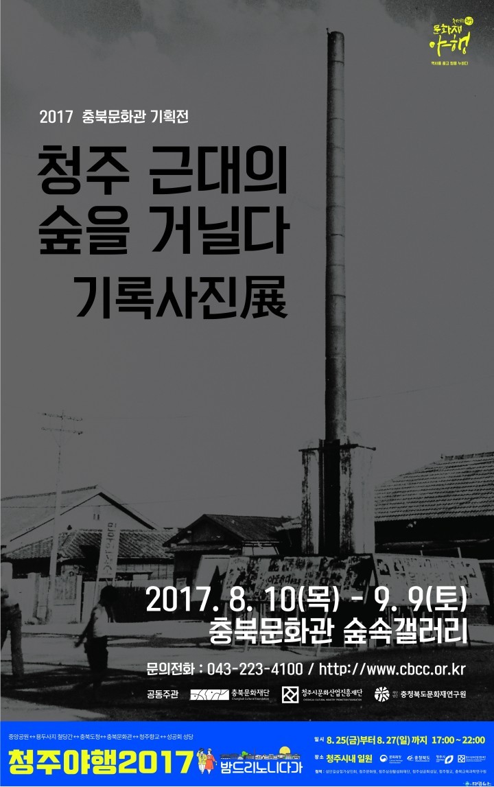 또한 전시 진행을 충북문화재단과 청주시문화산업진흥재단, 충청북도문화재연구원의 공동주관으로 전시의 충실도를 높였다. 전시는 청주 옛 읍성 터를 기준으로 성 안쪽 문화재(철당간, 압각수, 망선루, 충북도병마절도사영문, 청녕각, 척화비)와 읍성 밖의 근대문화유산(구 충북산업장려관, 충북도청 본관, 우리예능원, 향교, 구도지사관사, 성공회) 12곳을 중심으로 100여점의 흑백사진과 영상자료들로 구성된다. 충북문화재단 김경식 대표이사는 “이번 전시는 역사가 남긴 소중한 문화재의 조명과 더불어 근대화․산업화에 따른 청주시민의 추억이 담긴 근대문화유산에 대한 새로운 인식을 갖는 좋은 기회가 될 것 이다"며 “기억과 기록을 통해 어제와 오늘의 모습을 비교 감상하고, 미래유산을 연결시켜주는 계기로 역사적, 건축적 궁금증을 해소할 뿐만 아니라 야행행사 동안 한여름 밤의 추억을 더할 것으로 충북 도민 여러분들의 많은 관심과 참여를 바란다"고 했다.