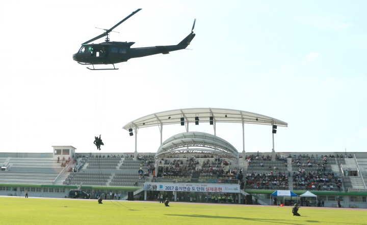[경기타임뉴스=김정환] 남경필 경기도지사는 지난 22일 평택시 소사벌 레포츠타운 일원에서 ‘2017 을지연습 복합사태 대응 도 단위 실제훈련’을 지휘하고, 유사시 민관군경 합동 비상대비 태세를 점검했다.
