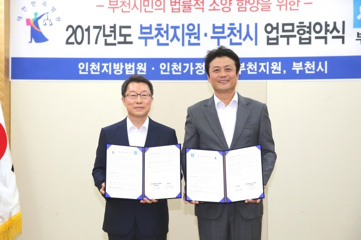[부천타임뉴스=장진아] 부천시와 인천지방법원․인천가정법원 부천지원(이하 부천지원)은 8월 29일 부천지원에서 업무협약식을 개최했다.