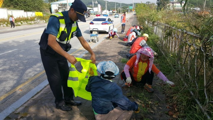 특히, 노인층 보행자를 대상으로 야광조끼를 나눠주고 농기계에 야광스티커를 부착하는 등 최근 발생한 사망사고의 유형을 설명하며 평소 좌우를 잘 살피고 건널 수 있도록 당부하였다.