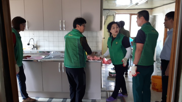 봉사활동에 나선 참여자 11명(구새마을회 4명, 동새마을회 7명)은 오전9시부터 오후 4시까지 재가대상 2개소에서 ▲집안 도배 ▲싱크대 교체 ▲장판 깔기 ▲하수관을 수리하였으며 작업이 끝난후에는 노인이 거주하는 집안팎을 구석구석 청소하고 주변환경을 청결하게 정리하였다.
