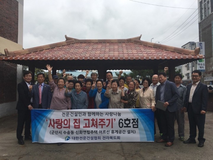 ‘사랑의 집 고쳐주기’는 도내 취약계층의 열악한 주거환경 개선을 위해 대한전문건설협회 전라북도회가 전문 인력과 예산 등을 제공해 지붕누수, 도배, 장판 등을 보수하고 장애인과 노인의 쉼터를 위한 휴게 공간을 조성하는 사업이다.