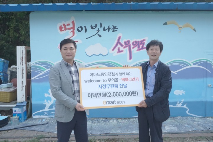 벽화그리기를 위하여 이마트 동인천점(점장 이인호), (주)유니에스(대표이사 이용훈)에서 후원금 전달과 함께 직접 활동에 참여했다.