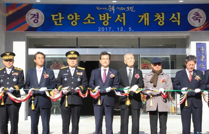 [충북타임뉴스=한정순 기자] 지역 주민에게 양질의 소방서비스를 제공하고 화재, 구조, 구급 등 각종 재난업무의 신속한 대응을 위한 ‘단양소방서 개청식’이 열렸다. ‘단양소방서(서장 임병수)’는 지역 주민의 오랜 숙원이던 단양소방서 개청 행사를 12월 5일 단양소방서 청사 광장에서 이시종 도지사를 비롯해 도의회 엄재창 부의장, 이태훈 단양부군수, 조선희 단양군의회의장 등 내빈과 지역주민, 의용소방대원, 소방공무원 등 300여명이 참석한 가운데 개최했다. 임병수 초대 단양소방서장은 식사에서 "단양군민의 재산보호와 생명을 존중하며 지역주민들과 함께하는 예방행정과 재난태세 확립, 친절과 감동을 주는 소방서비스 제공을 위해 최선을 다하겠다"고 했다. 또한, 개청식에 참석한 이시종 도지사는 “단양소방서 개청은 최근 단양 관광산업단지 등 관광산업 군으로 변모하고, 스포츠파크 조성 등으로 스포츠산업의 메카로 도약하고 있는 단양군 발전을 더욱 안정적으로 뒷받침해줄 것이다"며, “앞으로 단양소방서가 지역주민들의 안전과 행복을 지키는 안전지킴이 역할을 충실히 해 주실 것이라 믿는다"고 했다.‘단양소방서’는 충북 단양군 단양읍 삼봉로 421-56에 지상 3층, 부지면적 5,220㎡, 건물 연면적 2,355㎡로 건축되었다,