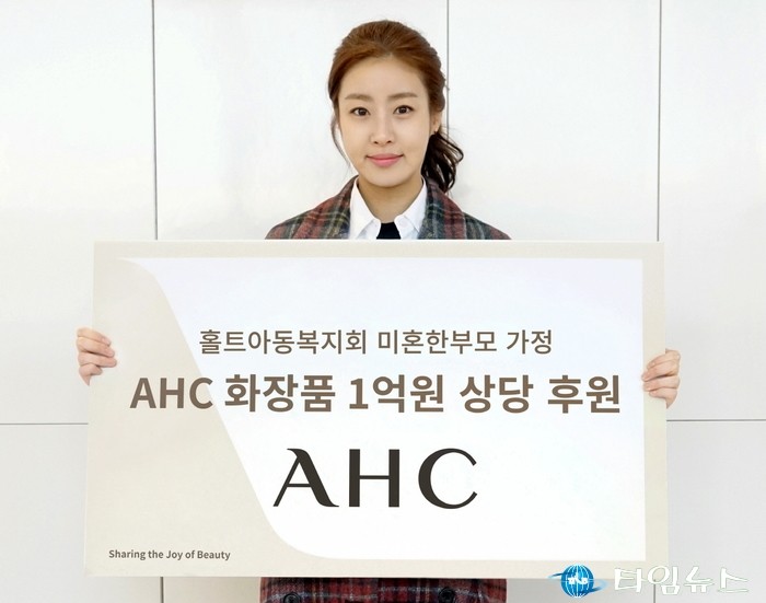 [서울타임뉴스=장하나 기자]배우 강소라와 화장품 브랜드 AHC가 홀트아동복지회에 미혼한부모들을 위한 1억원 상당의 AHC 화장품을 후원했다.