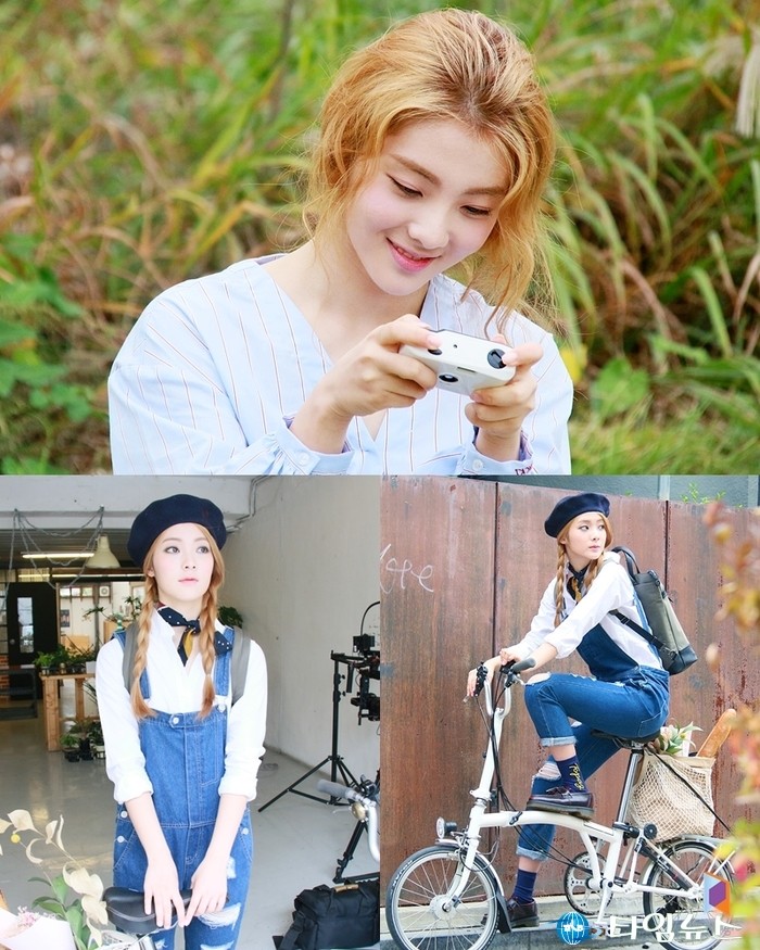 공개된 사진 속 루시는 광고 촬영에 한창인 모습이다. 카메라를 작동하며 수줍은 미소를 지어 보이는가 하면 깜찍한 멜빵바지 패션으로 자전거를 타는 활기 가득한 모습을 보여주는 등 청순함과 발랄함을 오가는 180도 다른 분위기로 시선을 사로잡고 있다.