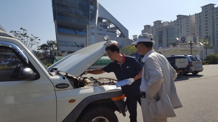 서비스 날 오후 2시~4시에 자동차 배출가스 점검 부스를 차려놓고 민관 합동 점검을 한다.