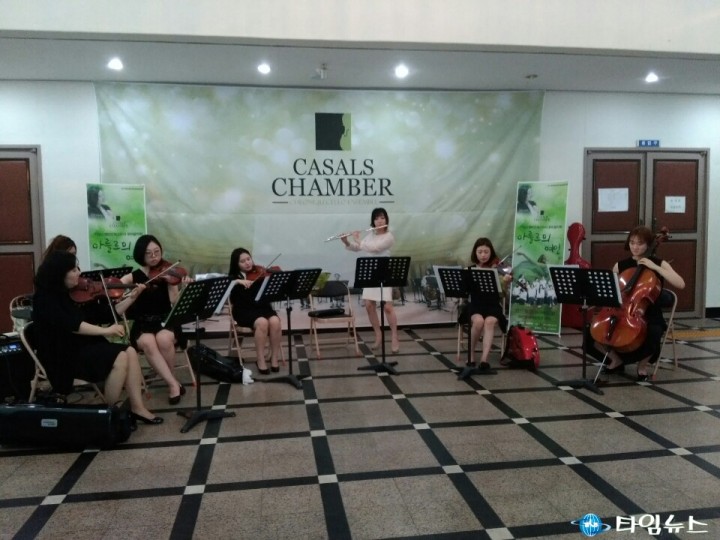 [보은타임뉴스=한정순 기자]보은군 상주예술 단체인 카잘스챔버오케스트라(단장 구동숙)에서 ‘문화가 있는 날’인 30일 저녁 6시40분에 보은문화예술회관 로비에서 작은음악회를 개최했다.이번 공연은 올해 들어 2번째 공연으로 ‘꽃날’이라는 주제로 사랑의 인사, 인연, 헝가리언 댄스 등 일반인에게 친숙한 9곡을 선정해 무료영화 상영 전 로비에서 주민들이 가볍게 공연을 관람할 수 있도록 기획했다.뜻밖의 음악회를 관람한 황희연씨는 “무료영화를 보러 왔는데 클래식공연도 감상할 수 있는 기회도 돼 아이들과 함께 유익한 시간이 됐다"며 “공연 중간 중간 지휘자가 관객들에게 설명하고 질문에 답하며 공연이 진행돼 문화가 있는 날에 정말 문화로 힐링 한거 같다"고 말했다.카잘스챔버오케스트라 구동숙 단장은 “공연장 상주단체 육성지원사업에 선정된 카잘스챔버오케스트라는 지난 4월 동학제 기념공연을 시작으로 보은군 내 각처에서 연주회를 개최해 오고 있다"면서 “앞으로도 주민들에게 쉽게 다가갈 수 있는 프로그램을 기획해 공연을 선보이겠다"고 말했다.한편 카잘스챔버오케스트라는 충북문화재단 공모사업으로 우리군 상주예술 단체로 선정된 단체이며, 카잘스챔버오케스트라는 올해까지 총 3년간 상주예술단체 보은군과 인연을 맺고 있는 단체이다.카잘스챔버오케스트라에서는 연중 지역주민에게 로비음악회, 송년음악회 등 다양한 클래식 공연과 청소년 교육프로그램 등을 하고 있다.
