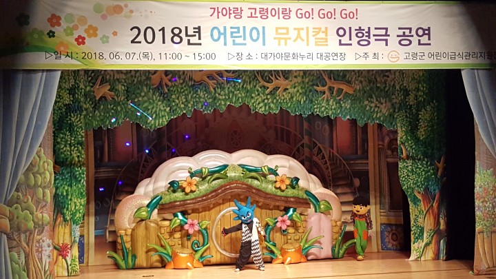[고령타임뉴스=이승근] 고령군어린이급식관리지원센터(센터장 김미옥)은 7일(목) 오전 10시30분부터 14시 30분까지 대가야문화누리 우륵홀에서 관내 유치원, 어린이집과 지역아동센터 24개소 어린이와 교사 500여명을 대상으로 어린이 식습관 형성 뮤지컬 공연을 개최했다. 고령군이 지원하고 고령군어린이급식지원센터가 주관한 이번 공연은「단짠, 단짠 마법을 물리쳐라」라는 주제로 어린이가 좋아하는 캐릭터 꺼꾸리가 손을 씻지 않고, 달고 짠 음식을 먹고 배탈이 나는 꿈을 꾸고 나서 좋은 식습관을 갖게 된다는 내용의 어린이뮤지컬로 진행되었다.특히 어린이 맞춤식 식품안전교육 뮤지컬은 노래와 율동을 어린이와 함께 함으로써 식품안전교육 내용을 어린이가 자연스럽게 이해하도록 하고 공연전후 화려한 레이져쇼 등 다양한 볼거리를 전달하여 어린이의 큰 호응을 얻었다.군 관계자는 이번 교육을 통해 어린이들이 편식을 예방하고 올바른 식습관을 형성하여 어린이의 성장·발달에 도움을 되기를 바라며 앞으로도 지속적으로 어린이 맞춤식 교육을 확대해 나갈 수 있도록 노력하겠다고 밝혔다.