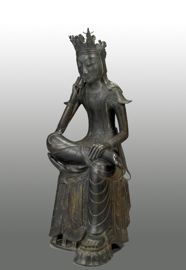 하반신을 덮고 있는 법의(法衣)는 얇아서 두 다리의 윤곽이 나타나 있고 평행 U자 모양 주름이 나 있다. 옷주름은 둥근 대좌 위에도 덮여 있는데 Ω형의 고식(古式) 주름이 잡혀 있다. 이렇게 하단에 길게 내려진 옷주름들은 상 전체에 안정감을 부여하고 있다. 이 반가상은 세계적인 명품으로 주목받고 있다.