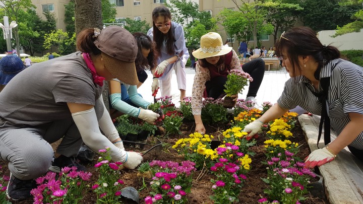 한일마을 주민공동체 한일두레를 중심으로 주민 50여 명이 참여해 마을정원 가득 국화와 과꽃, 채송화, 천일홍 등을 심었다.