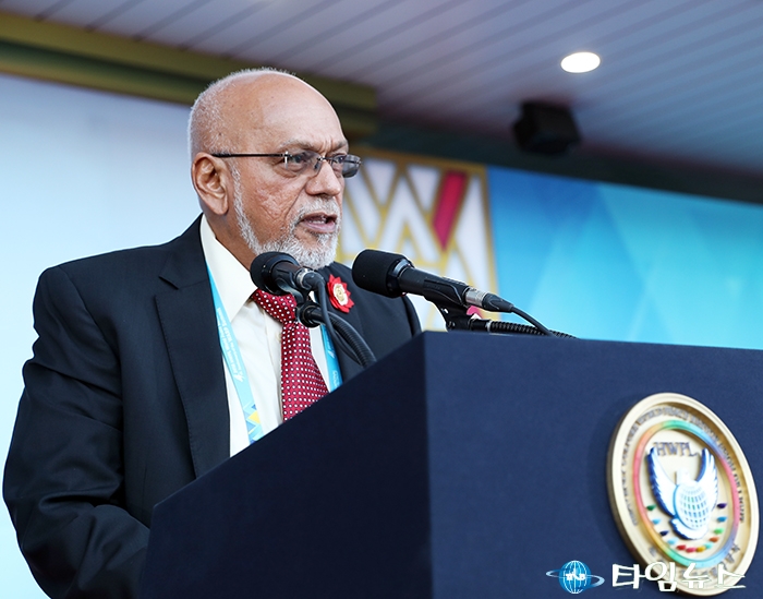 [타임뉴스] 지난 18일 인천아시아드주경기장에서 국제법을 통해 세계평화를 현실화하기 위해 ‘9·18 만국회의 4주년 기념식’이 (사)하늘문화세계평화광복(HWPL·대표 이만희)의 주최로 개최됐다.