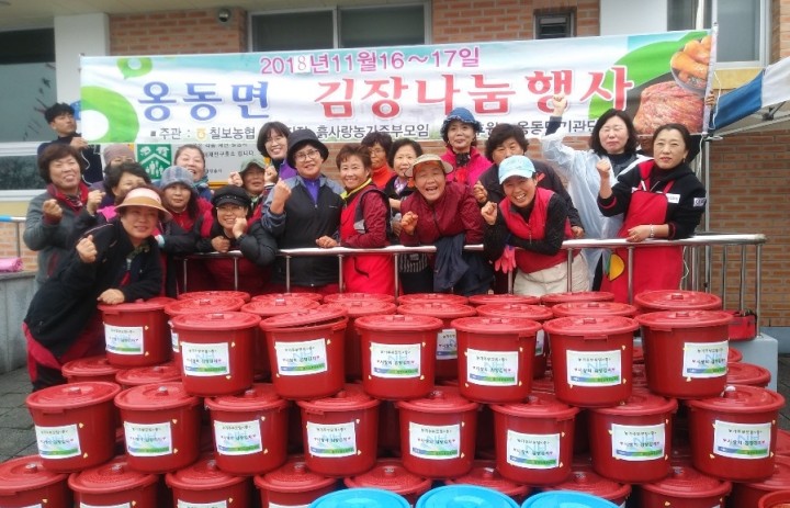 이날 행사에는 옹동면사무소와 옹동농협의 직원을 비롯하여, 이장단협의회, 새마을부녀회, 농가주부모임 등의 회원 50여명이 참여하여 김장김치 나눔행사를 가졌다.