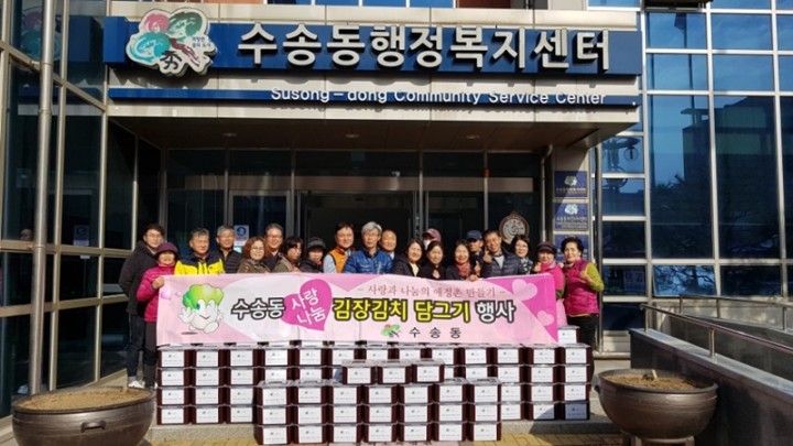 또, 지난 20일부터 이틀간 군산시 수송동은‘사랑과 나눔의 애정촌 만들기’사업으로 ‘사랑의 김장김치’ 250포기를 담가 어려운 이웃들에게 따뜻한 온정을 나눴다.