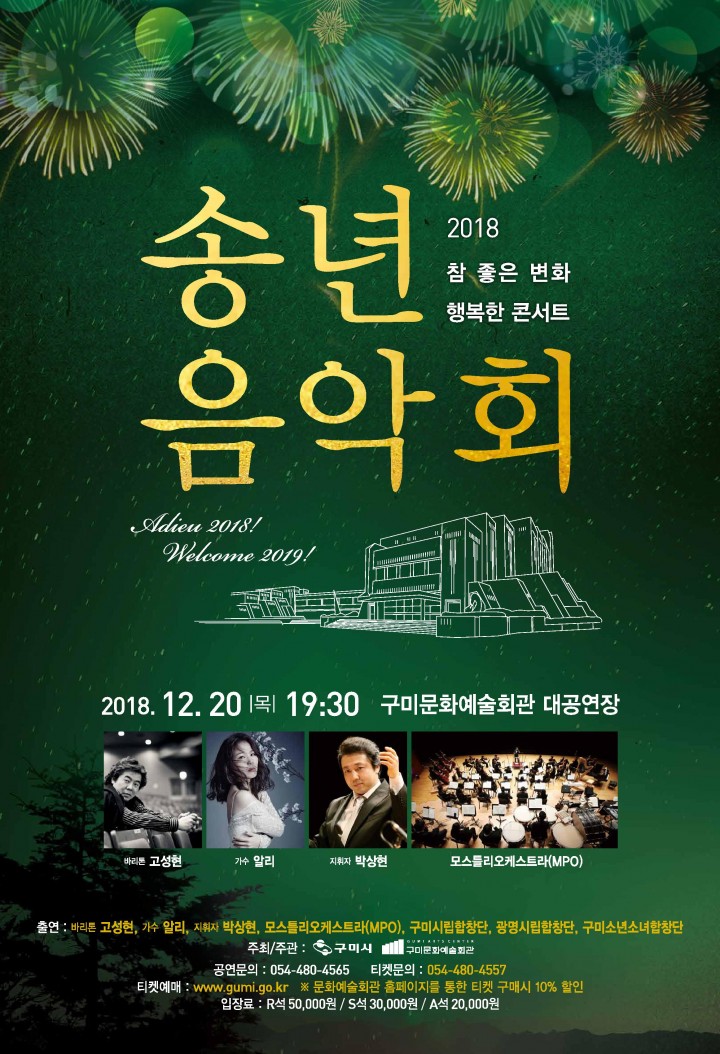 그 외에도 구미시립합창단, 경기도 광명시립합창단, 구미소년소녀 합창단과 제2의 정명훈으로 평가받는 국내 실력파 마에스트로 박상현이 이끄는 모스틀리 필하모닉 오케스트라가 협연하여 웅장하고 화려한 무대로 수준높은 음악을 선보일 예정이며 송년음악회의 대미는 크리스마스 모음곡으로 마무리된다.