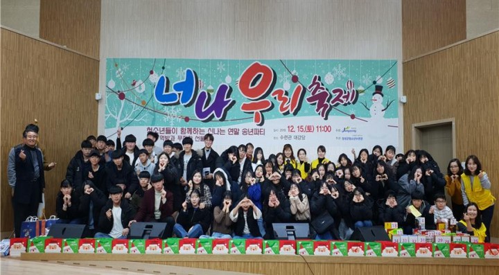 [장성타임뉴스=임종문 기자] 지난 15일 장성군청소년수련관(김상룡 관장)에서는 지역 청소년 100여명과 함께하는 신나는 연말 송년파티인 ‘너나우리 축제’가 수련관 대강당에서 진행되었다.