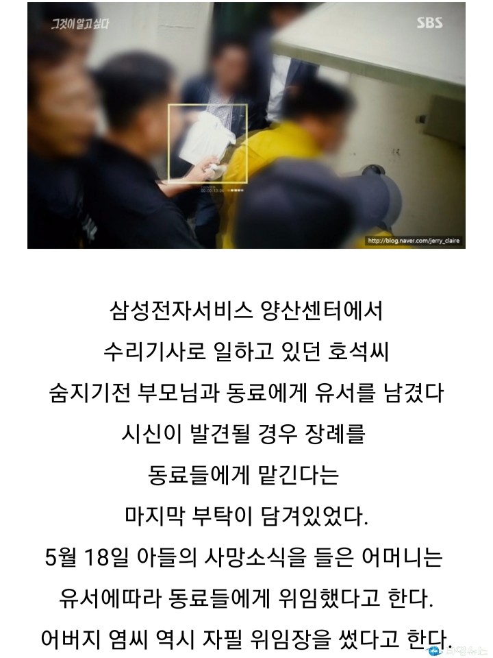하지만 거액을 들여 아버지를 회유했고, 그렇게 시신을 탈취한 삼성은 '인면수심'이 아닐 수 없는 것이다.