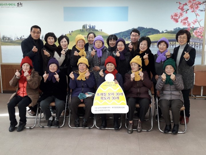 [순천타임뉴스=임종문 기자] 지난 10일(목) 순천시자원봉사센터에서는 순천시자원봉사센터에 등록된 신대 중흥1차 부녀회와 함께 ‘사랑의 뜨개질 모자·목도리 나눔 전달식’을 진행 했다.