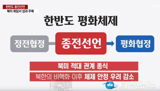 그렇다면 미북 양자 간에 종전선언을 할 가능성은 어떨까? 이와 관련해 일본 '교도 통신'은 미국과 일본정부 관계자의 말을 인용, 미국이 지난 평양 실무협의에서 북측에 '평화선언' 채택을 타진했다고 보도했다.
